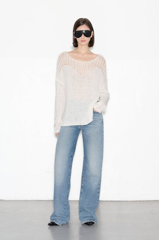 Pull droit ample ajouré P-MANATHAN BLANC